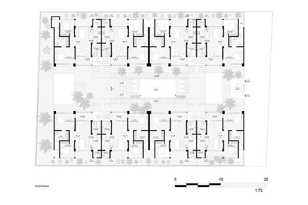 位于墨西哥的工作室Grajales Arquitectos在圖盧姆完成了一個名為TOH的綠化住房項目。地面以上有兩層,共計16套公寓,所有公寓都圍繞著一個巨大的中央天井,天井是綜合體的公共區域。