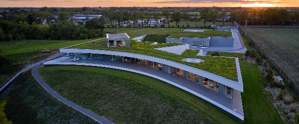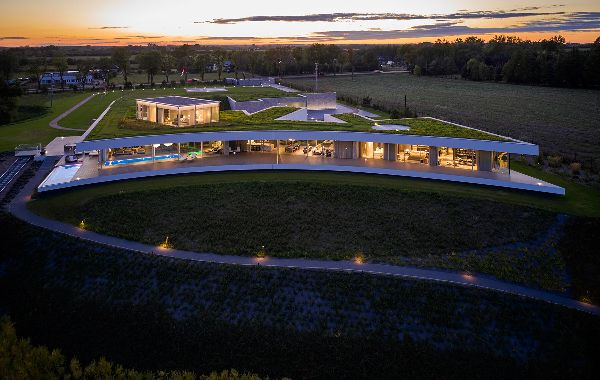 建筑公司Mobius Architekci在波蘭華沙附近完成“沙丘屋”住宅項(xiàng)目。房子坐落在綠色的草地上,周圍是郁郁蔥蔥的森林,獨(dú)特的弧形輪廓讓人聯(lián)想到海沙,因此該項(xiàng)目被正確地命名為——“沙丘屋”。波蘭建筑師描述彎曲的形狀為豎琴,橫跨山坡,沿著蜿蜒的納雷夫河的線條延伸。