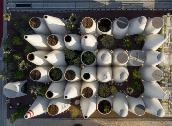 Querkraft建筑師從歷史上的風(fēng)塔和傳統(tǒng)阿拉伯粘土建筑的氣候調(diào)節(jié)特性中汲取了概念,將兩者融合在一起,建造了38個(gè)不同高度和不同開口的錐形結(jié)構(gòu),奧地利世博會(huì)的展館。