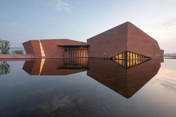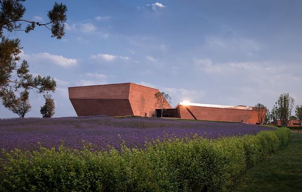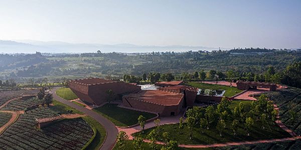 位于中國云南省彌勒市郊區(qū)的云南東風(fēng)云藝術(shù)中心,由杭州的line+工作室設(shè)計(jì),用紅色石板塑造了一個超大規(guī)模的建筑群。此“紅石陣”綜合藝術(shù)中心來自于競賽方案,有五個類似石頭的體量,面對著綿延無際的云貴高原和崎嶇的山脈。