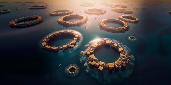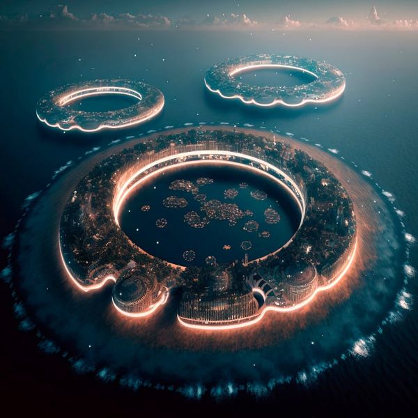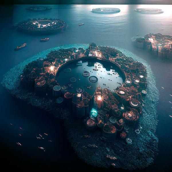該項目計劃在大太平洋深處創(chuàng)建一個大都市,用它自己捕獲的可回收塑料建造一個可持續(xù)的獨立城市,來清潔污染嚴重的大陸垃圾場。Polimeropolis還利用可再生系統(tǒng)在現(xiàn)場產(chǎn)生清潔的電力和水。首席建筑師Juan Manuel Prieto和Clara Focaccia通過與人工智能藝術家Maxi Araya合作拍攝的一系列Midjourney生成的無人機鏡頭來展示他們的視覺效果。
