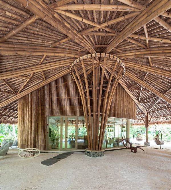 Desa Bambu 設(shè)計團隊嘗試用竹子建筑建造一個由漂浮在馬爾代夫群島上的幾個露天亭子組成的健康療養(yǎng)所。 Joali Being度假村通過在竹子框架上開發(fā)的可持續(xù)建筑綜合體提供沉浸式體驗,頂部是自然編織的屋頂檐篷。 設(shè)計團隊與 Asali Bali 工程集團合作,實現(xiàn)了 Bodufushi 島上的酒店和水療中心項目,包括俯瞰大海的 Yoga Shala 單元以及與自然環(huán)境融為一體的 Apothecary 建筑和休閑區(qū)。工程和施工旨在保持浮動休閑綜合體的建筑理念,提供技術(shù)解決方案和細(xì)節(jié),以保持結(jié)構(gòu)在特定島嶼氣候下的質(zhì)量和穩(wěn)定性。