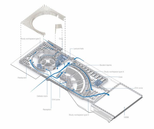 Ben van Berkel評論道:“與在筒倉中運作的傳統校園不同,未來的校園需要用敏捷的空間進行編程,邀請學生和教師學習、協作和共同創造。隨著學生人數的不斷增加,教育建筑需要非常靈活,通過基于教師間共享的模式來運作,從而促進更多的通才教育”。