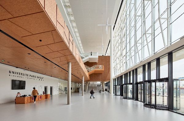 Bernard Tschumi urbanistes Architectes和Groupe-6最近完成了法國最大的教育項目之一,巴黎薩克雷大學的新生物-醫藥-化學研究和教育大樓。這個耗資2.83億歐元的項目位于巴黎,是該大學的一個重要科學中心,占地7.4萬平方米(80萬平方英尺)。該建筑群以玻璃外墻和花紋屏風為正面,由三個獨立的教育和研究翼樓組成,由一個被稱為“C?ur de P?le”的中央中庭連接,并設有研究實驗室、教室、禮堂、社交空間、餐廳、辦公室、后勤區域和地下停車場。