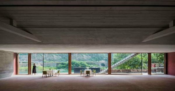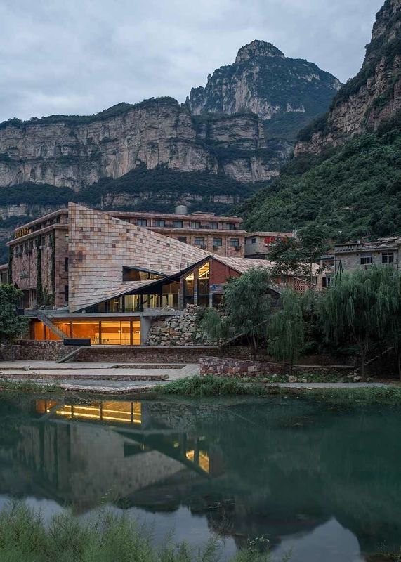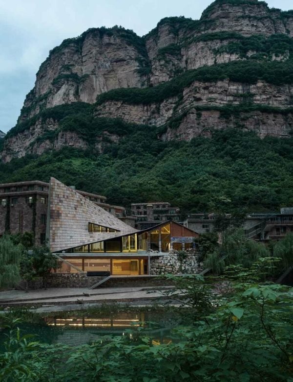 巧妙的弧形表面和明亮的石頭顏色使該結(jié)構(gòu)從村莊的常規(guī)紋理中脫穎而出。成為關(guān)注的焦點(diǎn),但它并不影響周圍的自然美景。相反,它增強(qiáng)了人工和自然之間和諧共存的氛圍,為景觀注入了活力。此外,通過這種布局,建筑似乎從山地環(huán)境中有機(jī)地發(fā)展出來,與周圍環(huán)境無縫呼應(yīng)。它有強(qiáng)烈的“地方感”,傳達(dá)出一種與太行山脈相呼應(yīng)的野性,給人多年來屹立不倒、不斷成長(zhǎng)的印象。