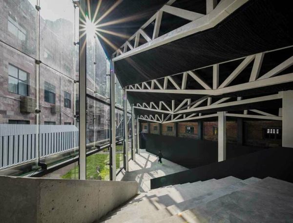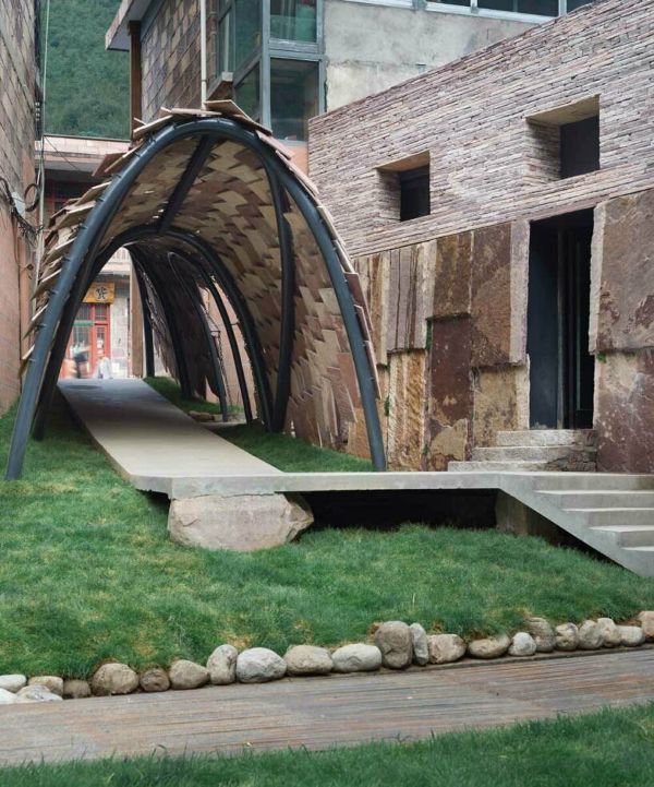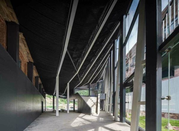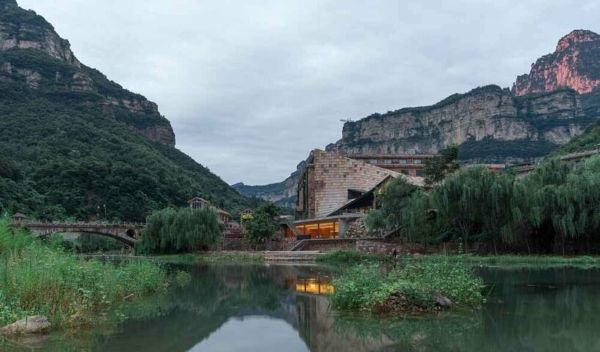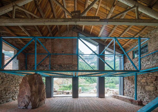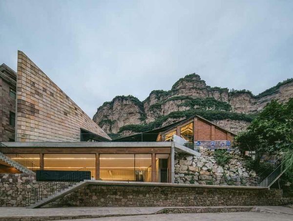 太行新宇美術(shù)館錯(cuò)綜復(fù)雜的形態(tài)融入了中國(guó)林州石板巖鎮(zhèn)的巖石地形。由王沖工作室設(shè)計(jì),建筑與村莊的結(jié)構(gòu)完美地融合在一起,活化了舊倉(cāng)庫,增強(qiáng)了景觀界面。設(shè)計(jì)團(tuán)隊(duì)試圖創(chuàng)造有機(jī)地從地形中生長(zhǎng)出來的結(jié)構(gòu),毫不費(fèi)力地將新舊元素融合在這個(gè)狹窄而緊湊的場(chǎng)地上。當(dāng)?shù)嘏f石料的可持續(xù)再利用已被采用,以恢復(fù)傳統(tǒng)的石料工藝,并創(chuàng)造多層次的公共開放空間。該建筑沒有采用現(xiàn)代西方藝術(shù)展覽中使用的公共空間的典型符號(hào),如白色的方形空間或懷舊的傾斜屋頂。相反,它的目的是日常生活感的空間,同時(shí)使參觀者與自然美景有更緊密的聯(lián)系。