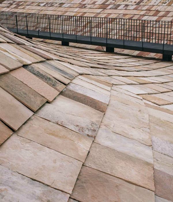 從視覺交流的角度來看,石板和石頭不僅是建筑材料,也是展示媒介。實(shí)驗(yàn)性的石頭建筑方法植根于當(dāng)?shù)氐膫鹘y(tǒng)和對(duì)成本效益的現(xiàn)實(shí)要求。它代表了可持續(xù)的設(shè)計(jì)方法,遏制了材料和資源的消耗。此外,根據(jù)建筑師的說法,當(dāng)?shù)氐慕ㄖ椒ㄒ仓厮芰巳粘I钪械暮?jiǎn)單和質(zhì)樸的美感。