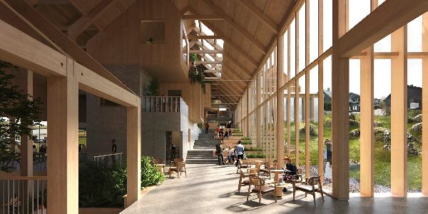 建筑占地面積達8000平方米,設想建造一個內部廣場,作為校園的中心。在這個中心空間內,有一條“街道”和一個大樓梯,鼓勵學生之間的日常交流,培養社區意識。校園的綜合設施包括圖書館、非正式學習空間、食堂、咖啡廳、研究和行政人員空間、教室和靈活的禮堂。建筑師希望通過考慮學生體驗的方方面面,創造一個豐富多彩、引人入勝的學習環境。