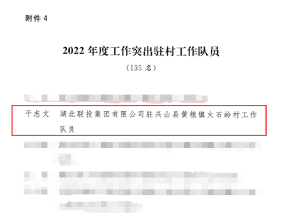 近日,省鄉村振興局、省委組織部、省委農辦、省農業農村廳聯合印發《關于表揚2022年度省派駐村工作先進集體和先進個人的通報》(鄂鄉振文〔2023〕19號),湖北聯投駐興山縣黃糧鎮火石嶺村工作隊獲評“2022年度工作突出駐村工作隊”稱號,駐興山縣黃糧鎮火石嶺村工作隊員干志文、湖北聯投清能集團駐咸豐縣朝陽寺鎮五龍坪村工作隊員李力昕被評為“2022年度工作突出駐村工作隊員”。