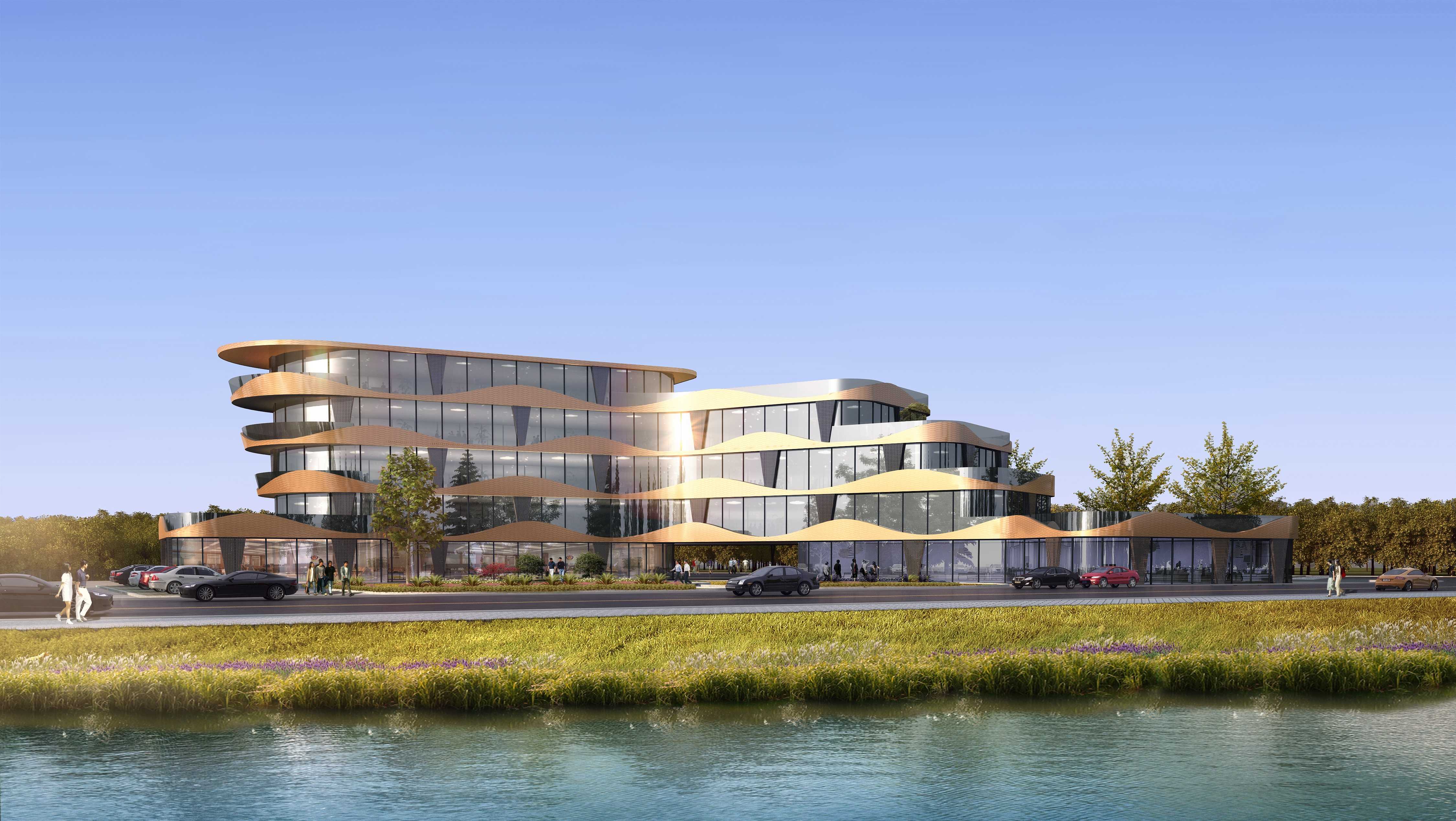 項目總建筑面積10091㎡,為5層綜合性辦公樓。主要功能涵蓋派出所、食堂、防汛指揮中心、辦公、宿舍等。項目東面臨大冶湖,工程院方案團隊以“金湖湛浪”的設計理念,展現魚躍龍門湖天闊的氣勢。主體功能區呈“L”型布局,最大化享受大冶湖景觀。通過建筑退臺設計,提供更多的室內外交互空間和露臺活動場地,加強與湖面景觀的互動。底層架空, 結合圍合而成的景觀廣場,與大冶湖形成景觀視線通廊。