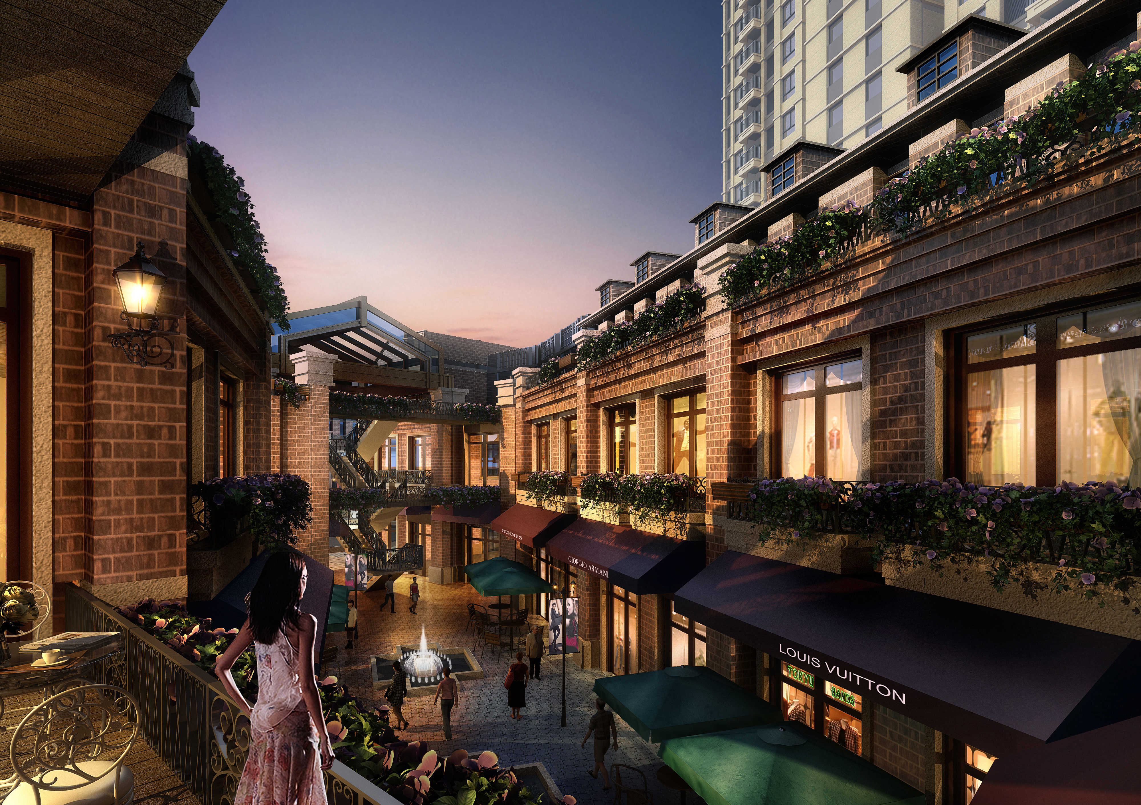 黃岡聯投國際城項目位于黃岡市,總用地面積227006.86平方米,本項目總建筑面積433812.69平方米,容積率1.78。本項目在設計上繼承了古典主義遵循中心、對稱、軸線、等級、秩序、主從等設計原則,強調均衡、比例、節奏、尺度等構圖邏輯與審美趣味。無論單體建筑,還是群體建筑,對稱和均衡幾乎成為主導構圖的決定性因素。立面造型上繼承了古典主義的厚重感,適度簡化了古典主義的裝飾性,融合新材料、新工藝,表現新的時代和地域特征。