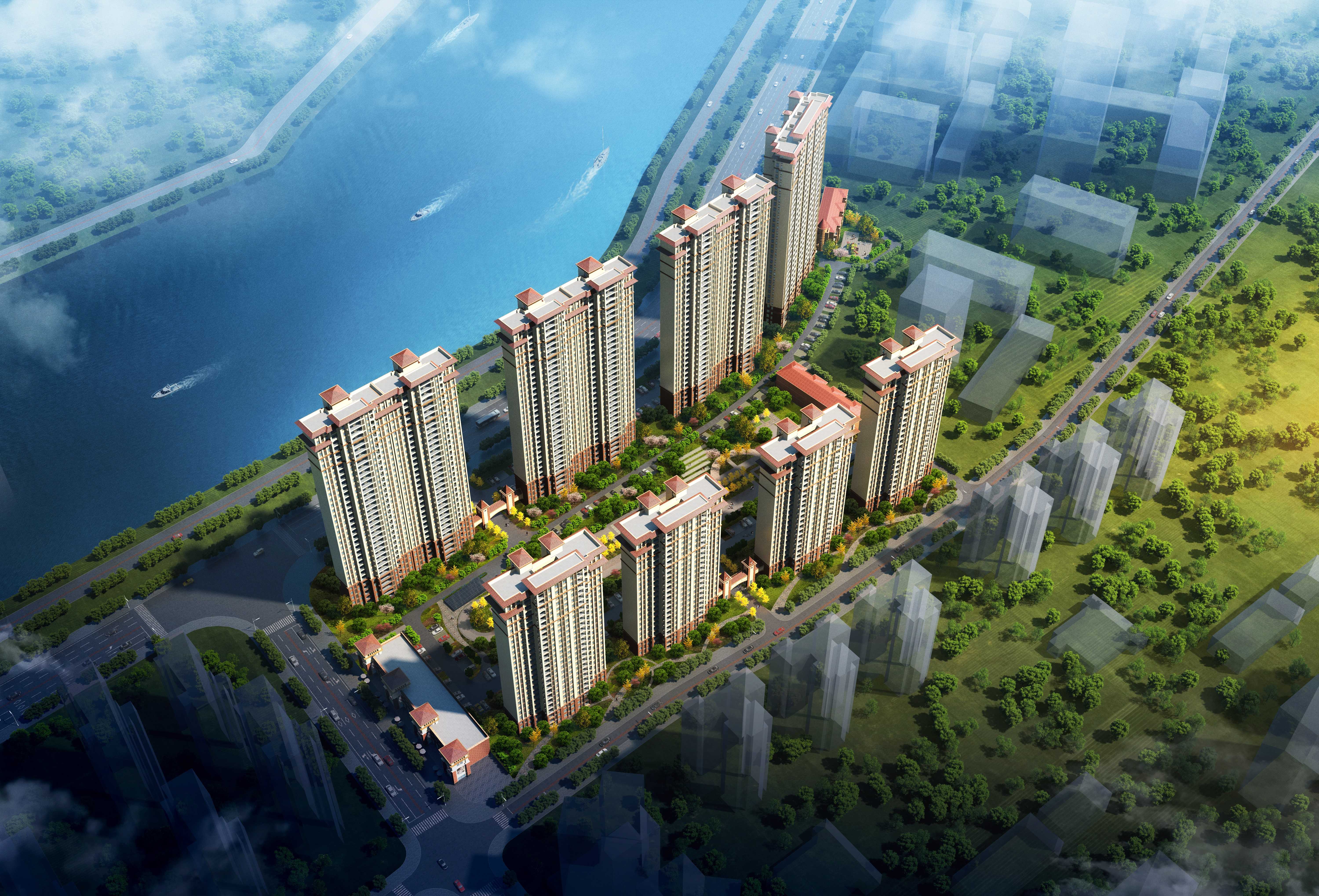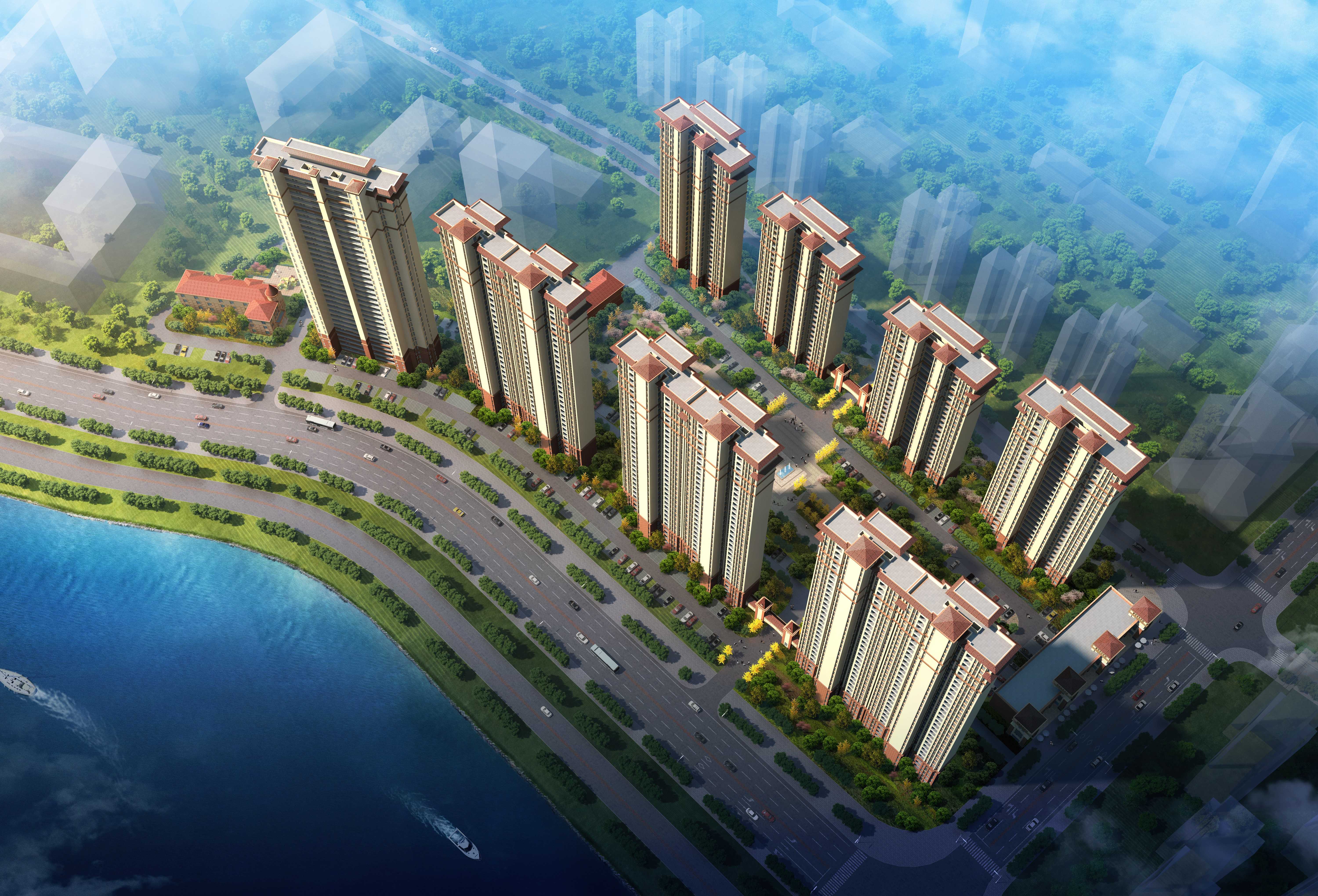 項目位于仙桃市漢水之濱,項目用北臨為濱江大道,南抵為解放大道,西接錢溝路,東側與望江樓小區接臨。本工程規劃總用地面積60447.96平方米,規劃建設用地面積47327.38平方米,總建筑面積為172018.80平方米,本案的重點是在設計解決優良的居住環境問題的同時,營造自然生態的建筑場所,塑造嶄新的城市形象。